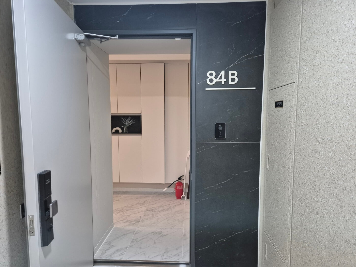 - 현관 설계: 복도에서 내부가 보이지 않는 꺾인 형태.