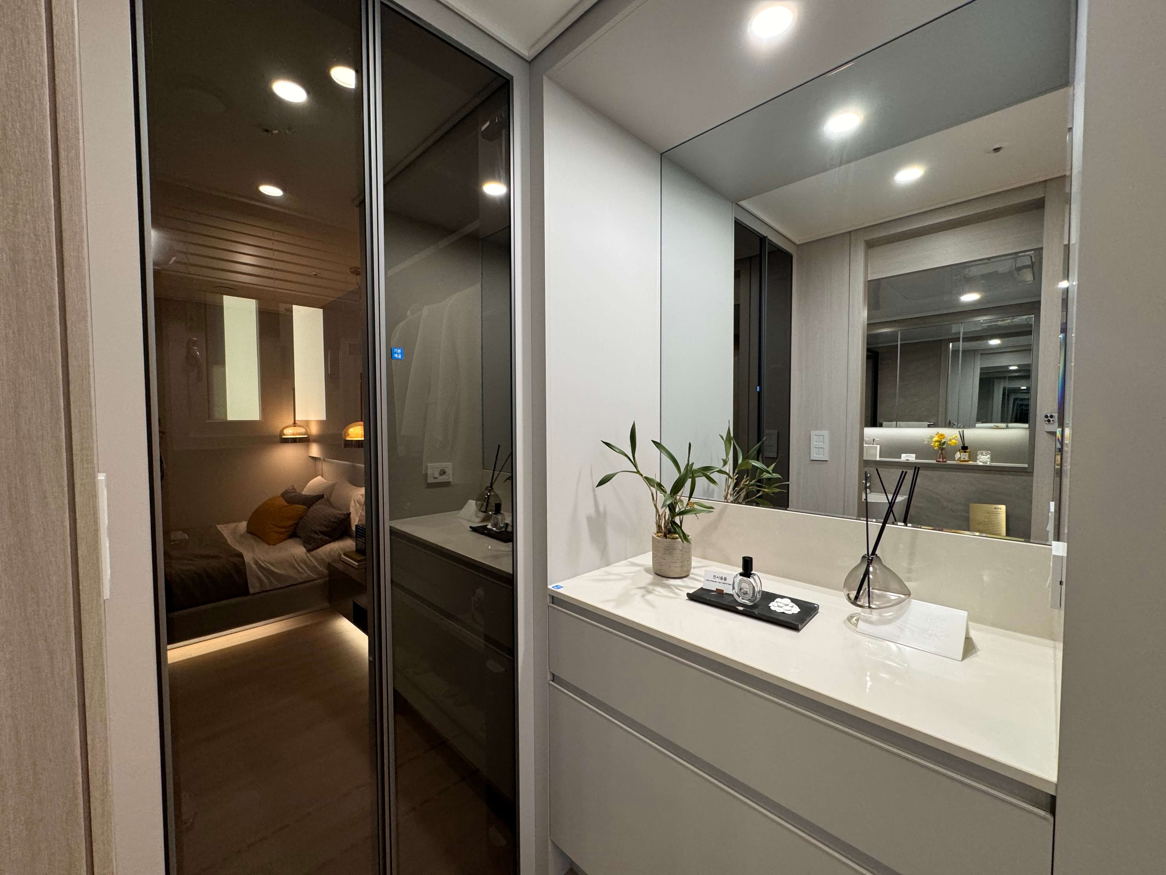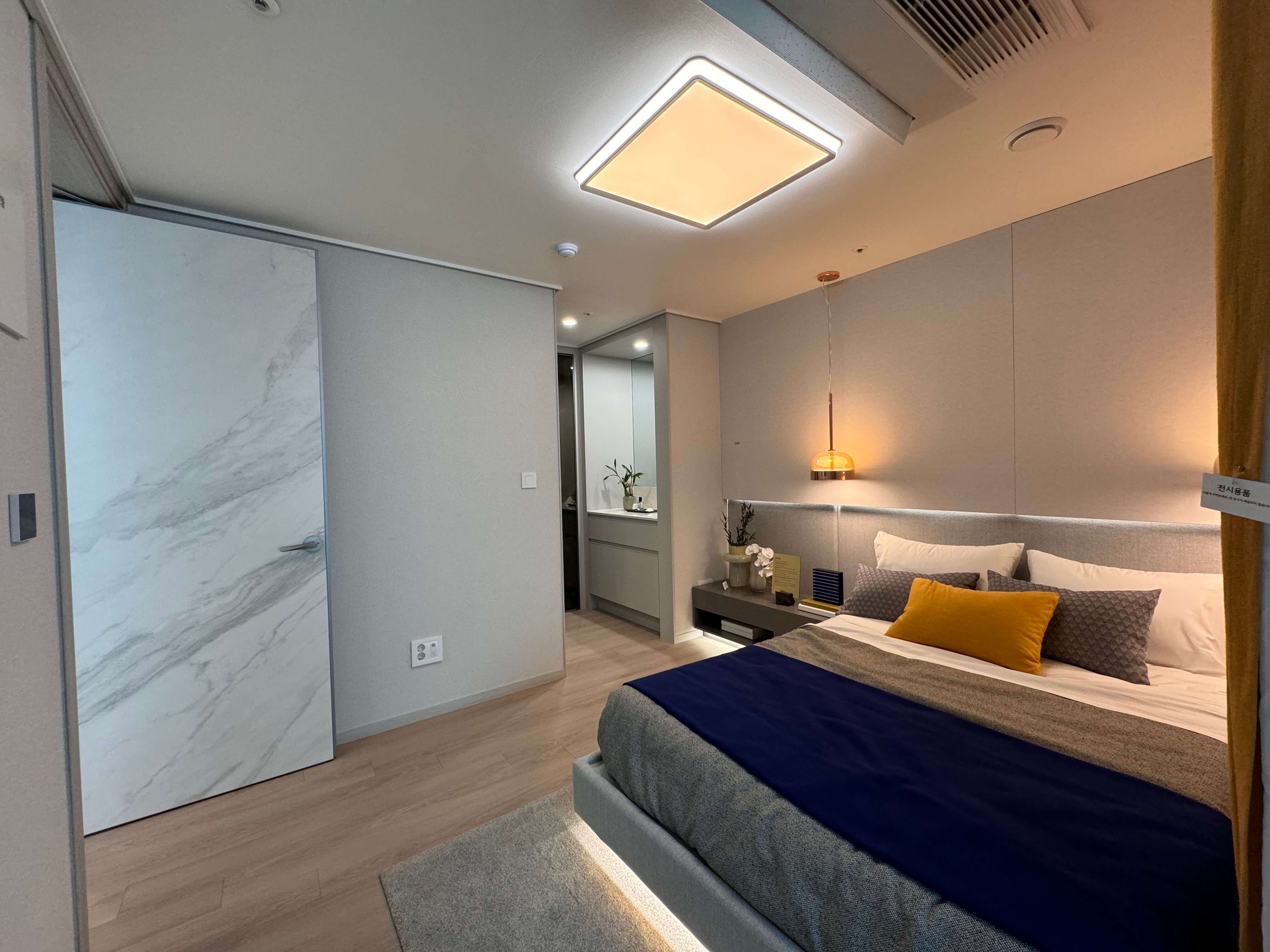 모든 평형에는 유로모빌 주방 가구, 삼성 비스포크 가전, AI 무풍 에어컨 등 고급 옵션이 기본 제공되며, 무몰딩 기법의 히든 도어 인테리어 등 고급스러운 분위기를 더하는 설계가 돋보입니다.