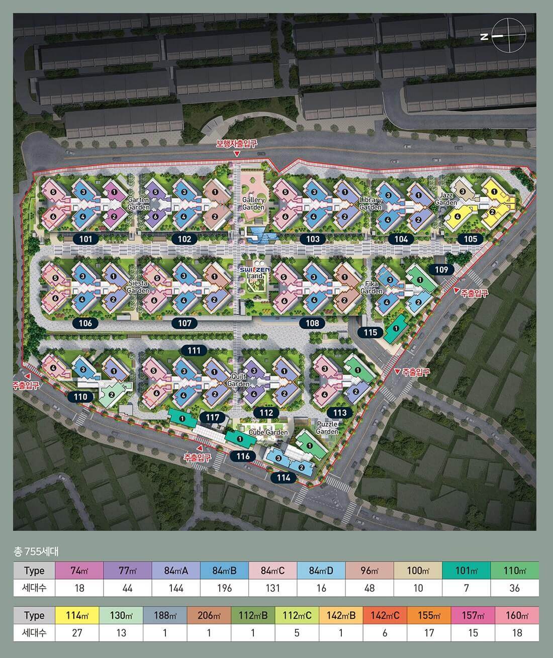 수성 포레스트 스위첸은 대구 수성구 파동 118-118번지 일원에 위치하며, 총 대지 면적 45,071㎡에 걸쳐 조성됩니다. 지하 7층부터 지상 15층까지 총 17개 동으로 구성되며, 세대 수는 755세대입니다. 특히, 중대형 주택형(85㎡ 초과) 비중이 206세대에 달하며, 복층 및 테라스형 설계를 포함해 총 15개 타입으로 세분화된 고급 주거공간을 제공합니다.