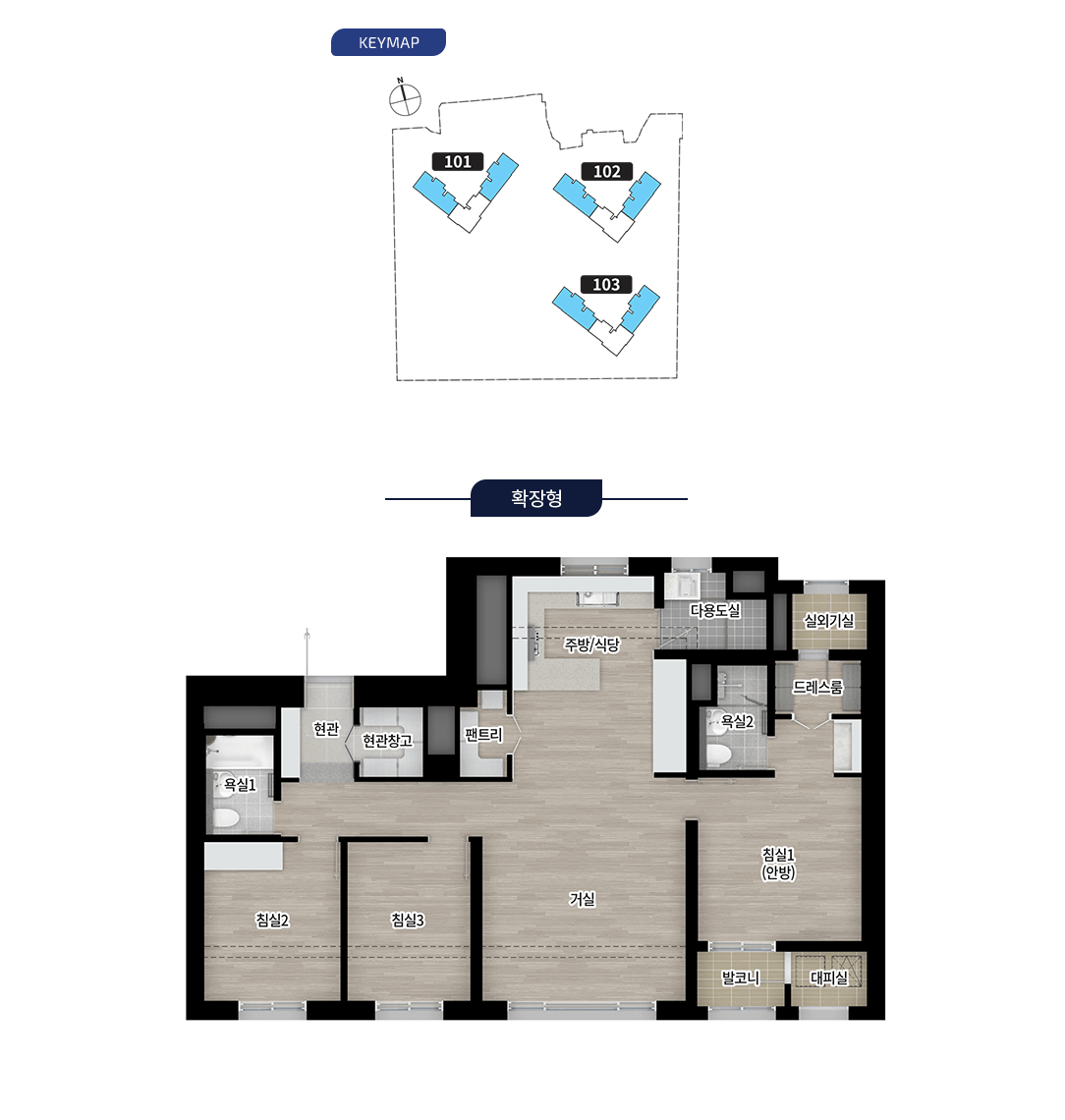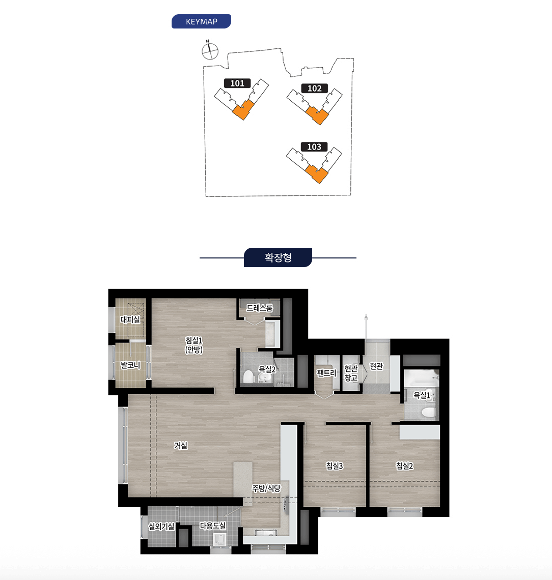 특히, 주거 만족도를 좌우하는 조경과 커뮤니티 설계가 상당히 정성스럽습니다. 여기에 전 평형 동일 구조가 아닌 두 가지 타입 선택지가 있다는 점도 소비자 중심의 설계로 보였습니다.