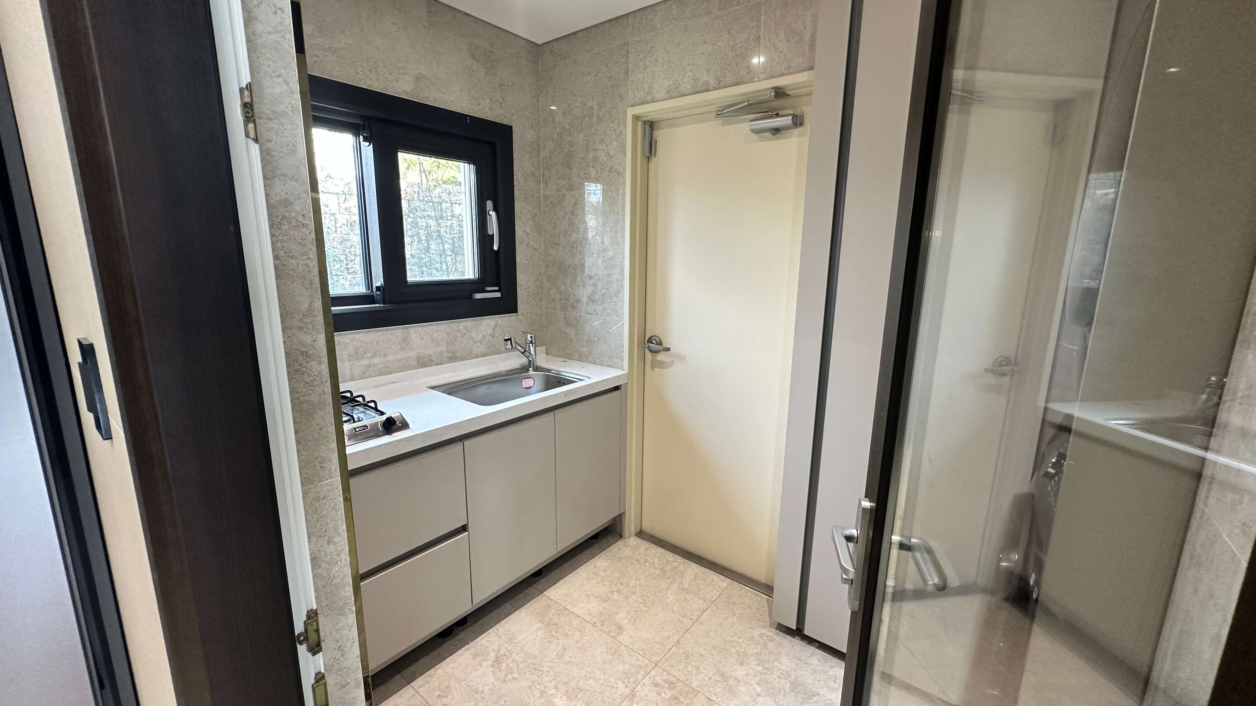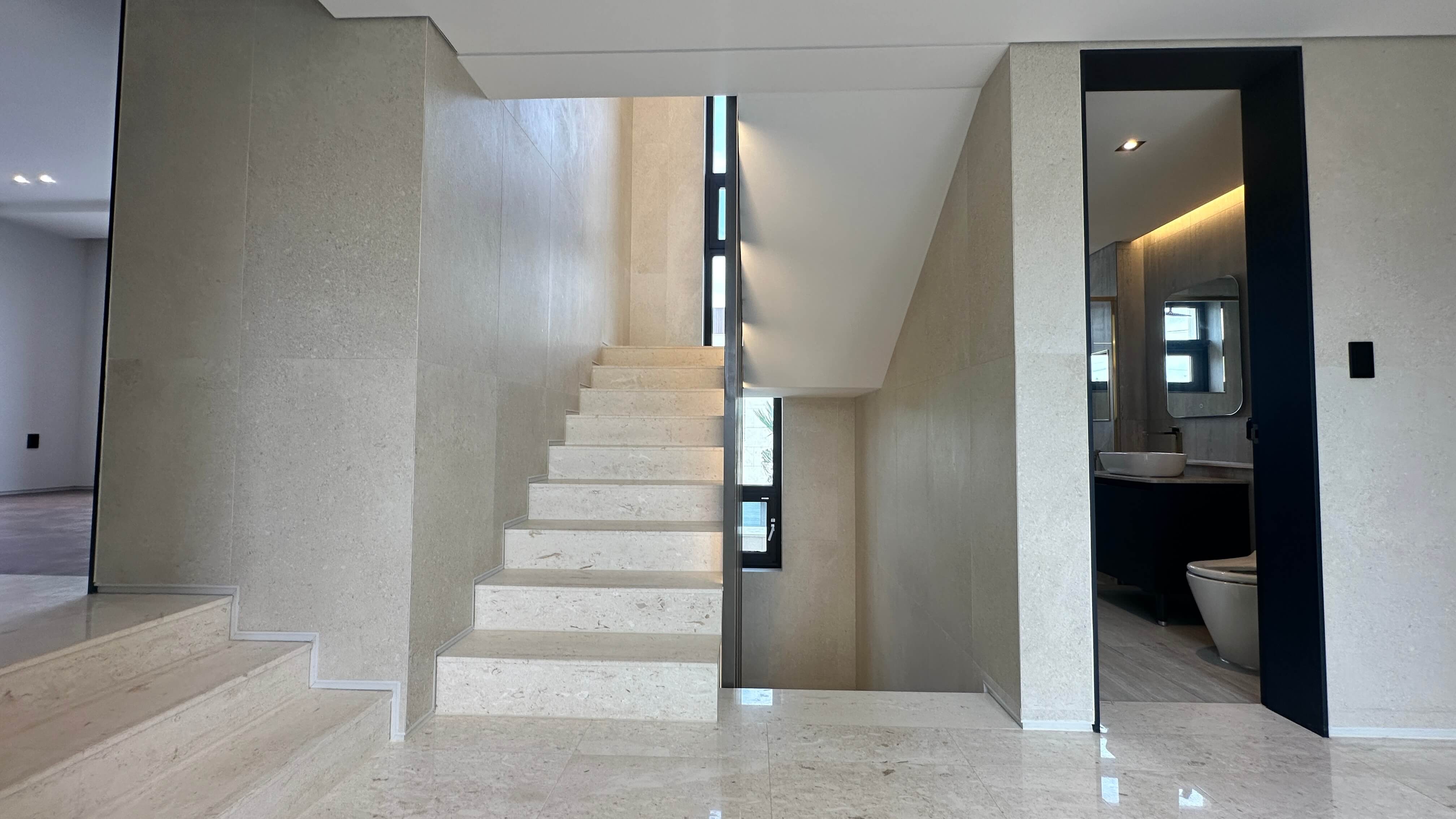 외부는 고급 대리석으로 마감되었으며, 실내에는 유럽형 주방가구 등 하이엔드 자재가 사용되었습니다. 보안, 조명, 전원 등을 제어할 수 있는 스마트홈 시스템도 갖추어져 있어 현대적인 생활을 제공합니다.