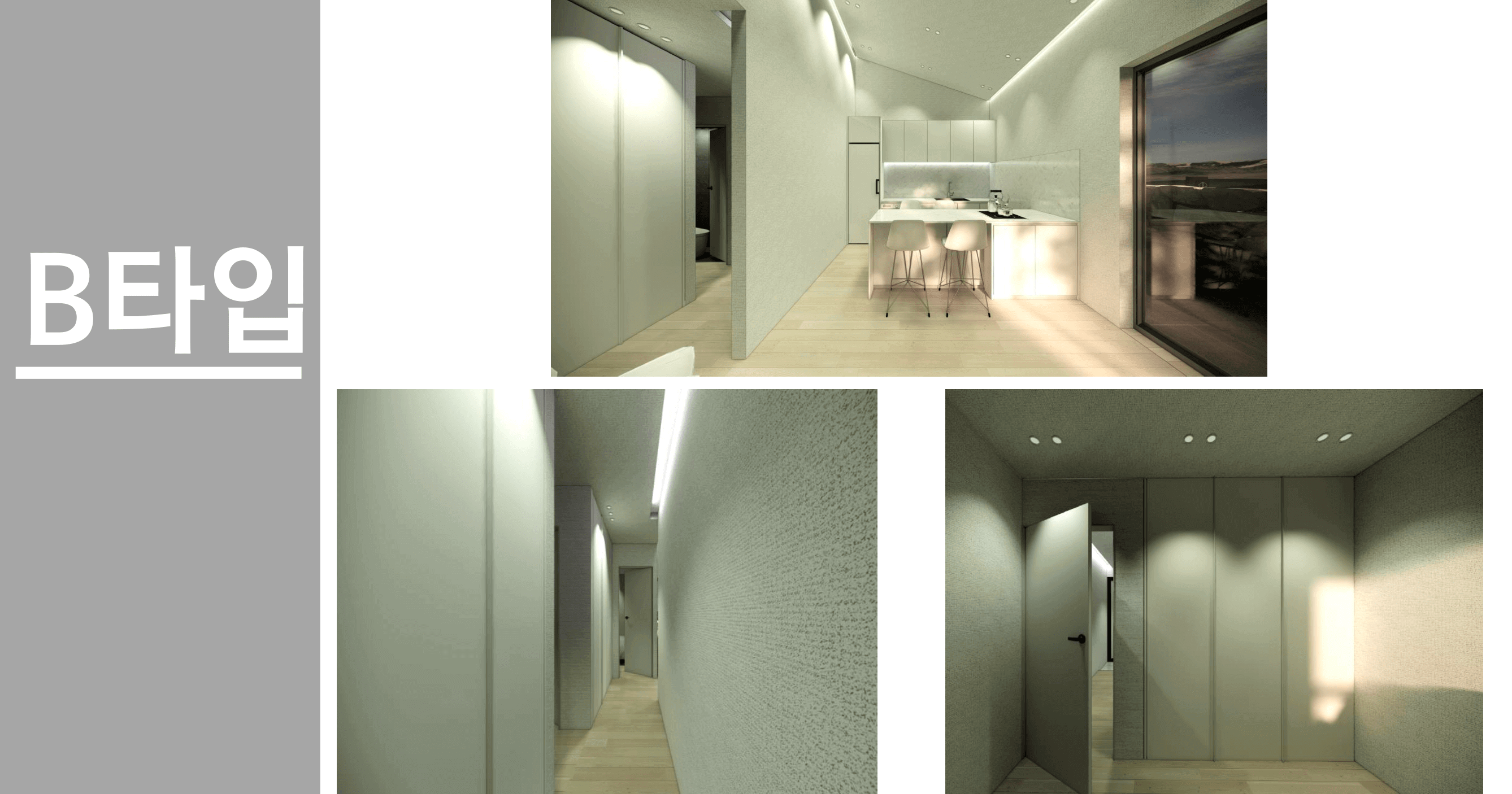 - B타입 / 2~3인가족과 반려가족에게 적합한 독립형 투룸구조 단층 13평