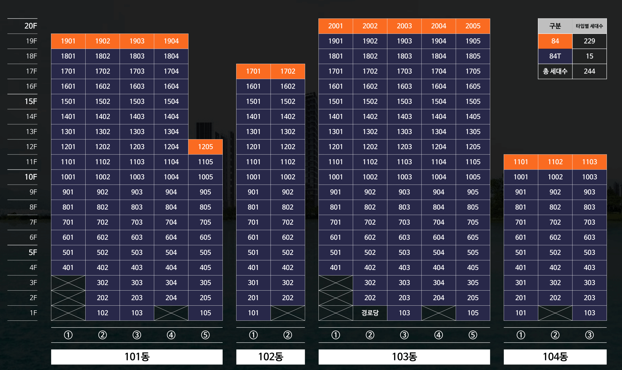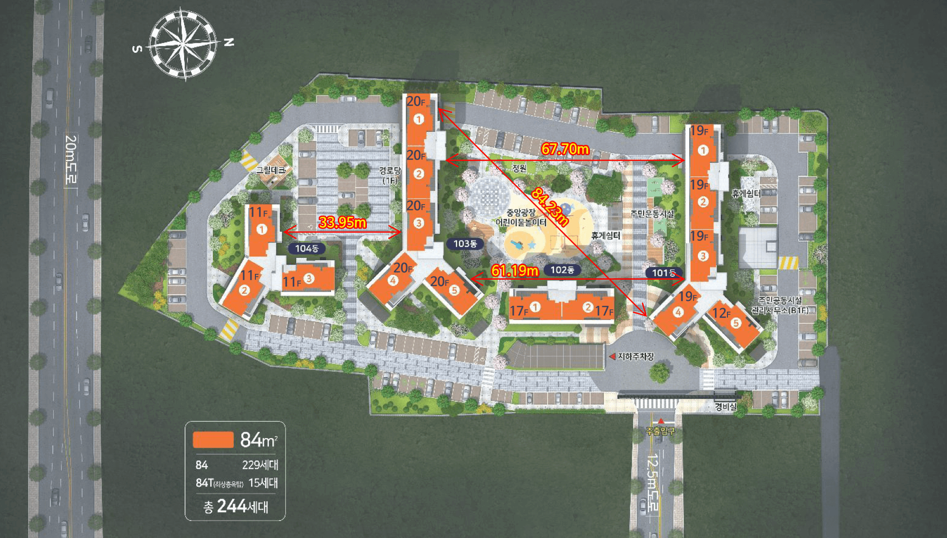 디오션 승원팰리체 서천은 지하 1층부터 지상 최고 20층까지 4개 동으로 구성된 대단지 아파트입니다. 총 224세대가 모두 84타입으로 구성되어 있어, 중형 평형을 선호하는 실수요자들에게 안성맞춤입니다.