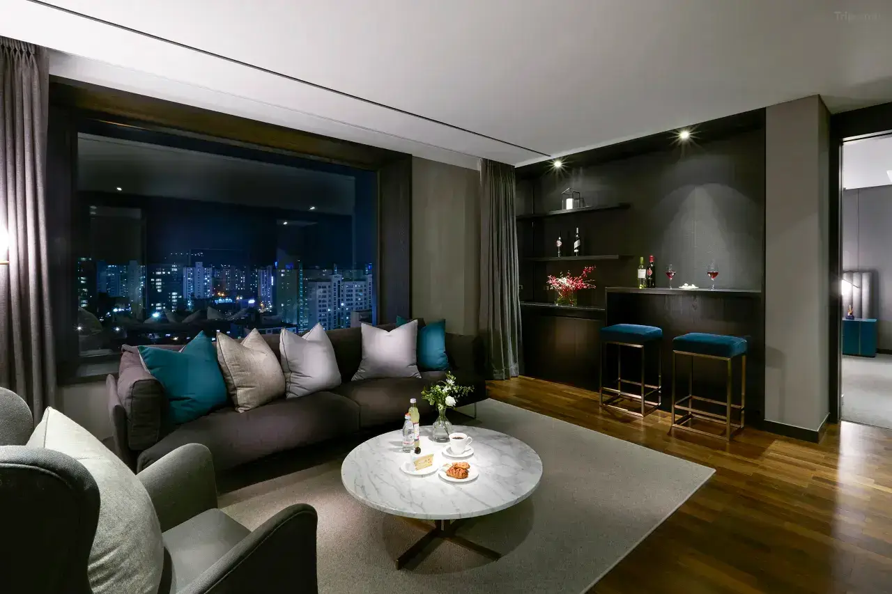 모든 객실은 깔끔하고 현대적인 인테리어로 꾸며져 있으며, 52인치 스마트 TV, 무료 Wi-Fi, 미니바, 고급 욕실 어메니티, 비데, 업무용 데스크까지 완비되어 있습니다. 단순한 숙박을 넘어 프리미엄 라이프스타일을 경험할 수 있는 공간으로 기능하고 있는 것이죠.