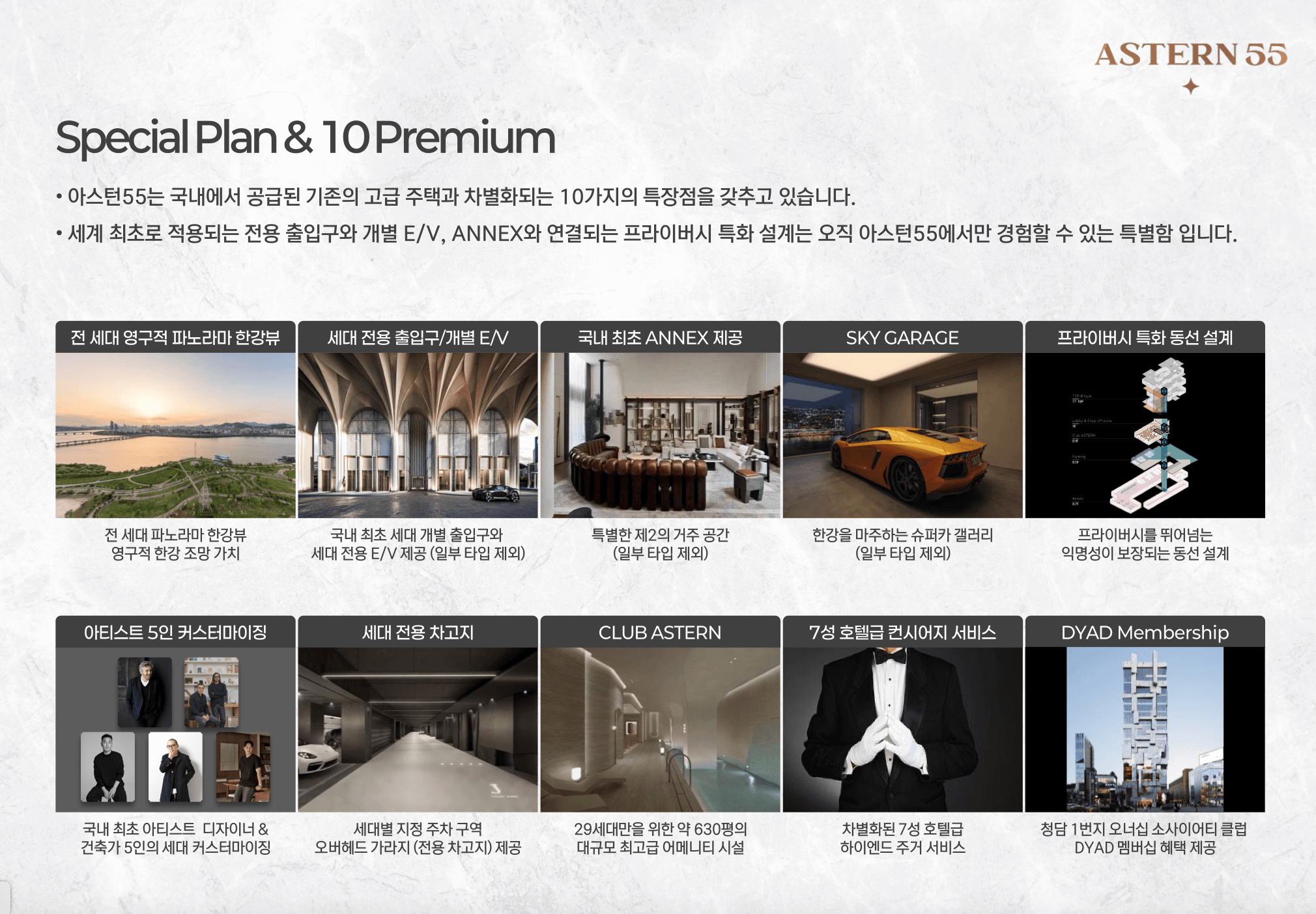 아스턴 55 아파트는 ‘서울 한강변 고급 주거지’라는 말의 의미를 새롭게 정의하는 프로젝트입니다. 희소성과 상징성, 그리고 철저히 입주민 중심의 설계와 서비스를 통해 단순한 주거가 아닌, 삶의 품격을 높이는 자산으로 자리매김했습니다.
