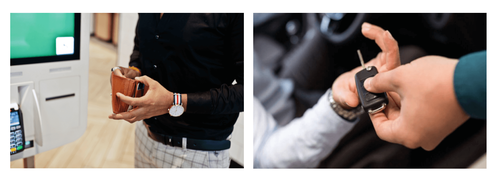 키오스크에서 주차대행 서비스 요금을 결제 후, 차량 키를 수령합니다.