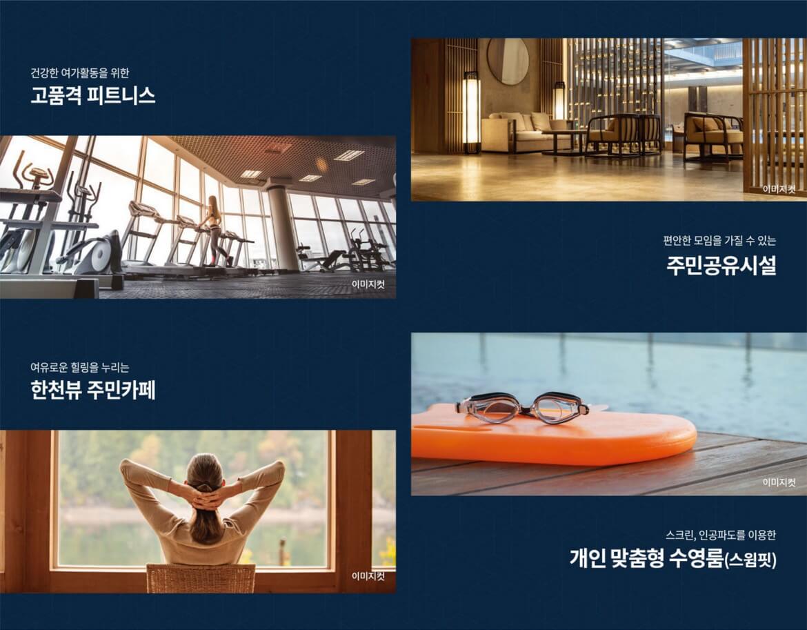 위파크 제주는 피트니스클럽, 실내골프연습장, 작은 도서관, 다함께돌봄센터, 주민카페 등 다양한 커뮤니티 시설을 제공합니다. 최신 기술을 접목한 스크린 수영장인 ‘스윔핏’도 도입될 예정으로, 입주민들은 인공 파도 모듈과 스크린 시스템을 통해 제자리에서 수중운동을 즐길 수 있습니다.