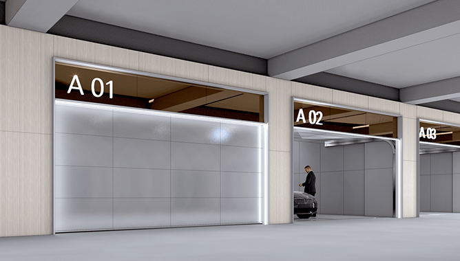 대형평형 세대를 위한 메이드의 별도 동선, 세대 내 금고 세이프룸, 버틀러 캐비닛 등 대형평형 세대를 위한 특별한 공간을 마련했습니다. 프라이빗 카 스튜디오는 슈퍼카 등의 고급 차량을 안전하게 보관하고, 개인 창고로도 활용 가능합니다. 공용부 엘리베이터는 세대별로 이용 가능하게 구분하여 개인의 프라이버시를 보호합니다.